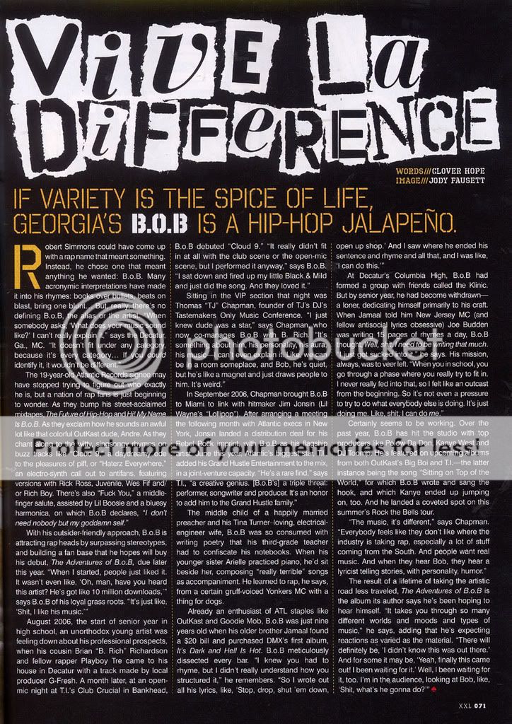 Check out the XXL's interview with B.o.B in the new issue with Lil Wayne on the cover. I bet u didn't know that B.o.B could really levitate...lol!!!!